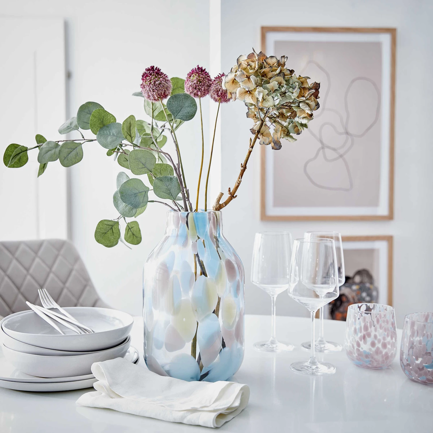 Weil Konfetti ein richtiger Gute-Laune-Booster ist, schmückt sich die pastellige Confetti Glas Vase mit einem Design, das an tanzende Papierschnipselchen erinnert. So schaffen Sie einen unbeschwerten Deko-Moment in Ihrem Zuhause, z.B. auf dem gedeckten Tisch, einer Kommode oder der Fensterbank. In einer weiteren Variante erhältlich.